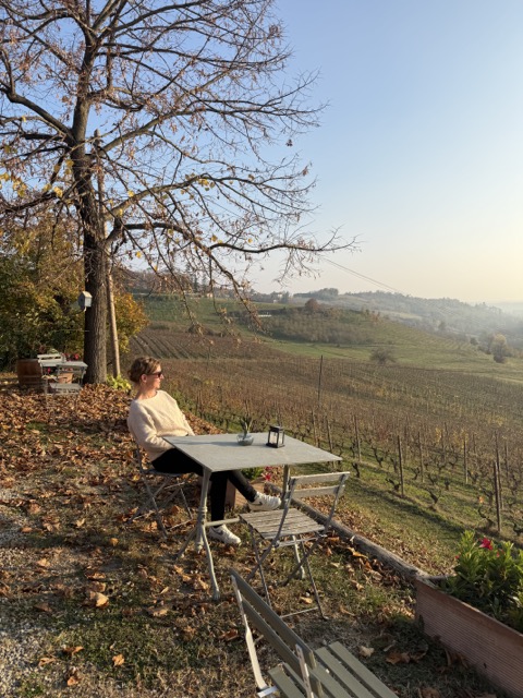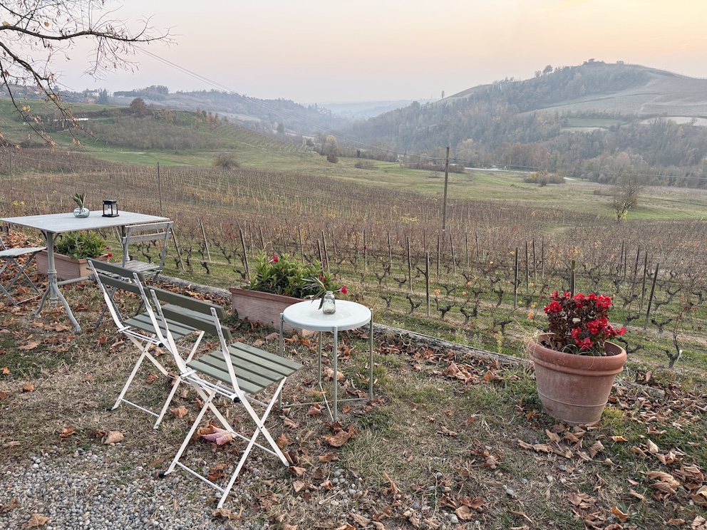 Beim Weingut Cascina Gilli waren wir dann endlich in den Weinbergen. Cascina Gilli ist idyllisch gelegen, in Monferrato Astigiano, einem hügeligen Weinbaugebiet, das für seine charaktervollen, sandig-lehmigen Böden bekannt ist und noch als geheimerer Teil des piemontesischen Weinlands gilt. Das wunderschöne Gebäude inmitten der Weinberge hat definitiv Postkartenqualität und schon fünf Minuten Verschnaufpause auf der Terrasse entschleunigen sofort.