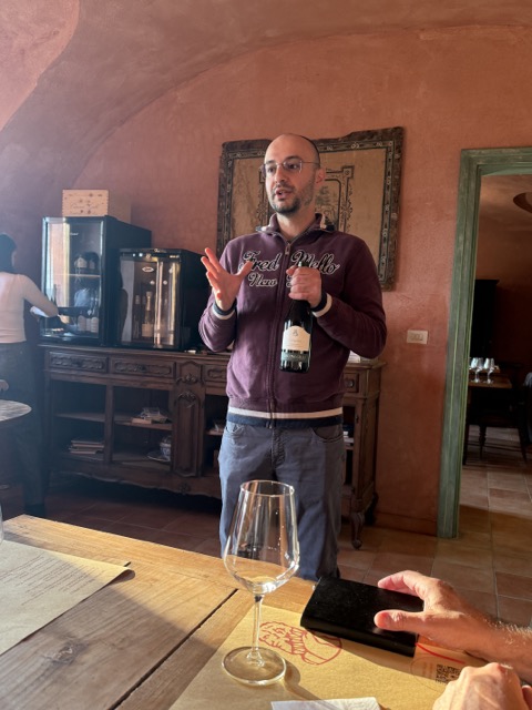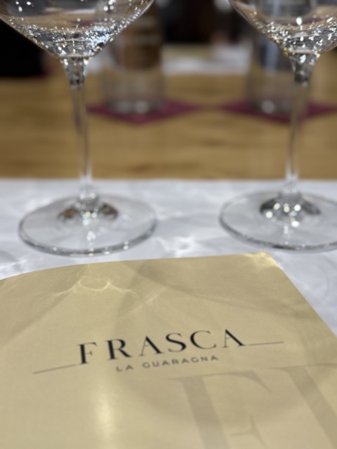 Weitere Sorten bei Frasca sind Freisa, Grignolino, Arneis und Riesling. Riesling im Rotweinland? Ja! Auf sandigen, steinigen Böden in 200 Metern Höhe und in kühlen Lagen funktioniert das erstaunlich gut. Der 2022er war mineralisch, mit Noten von grünem Apfel und Petrol mit einer gewissen Salzigkeit.