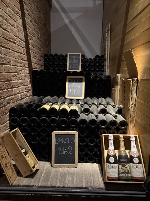 Die Weinberge rund um Castel Rocchero und Acqui Terme im Monferatto bilden das Herz des Weinguts, ergänzt durch renommierte, alte Lagen in Barolo und Barbaresco. Im Weinberg waren wir hier leider nicht, dafür aber im Keller. Und der hat mit seinen uralten Schätzen beeindruckt, die das Leitmotto von Scarpa widerspiegeln. Hier lagern Barolos von 1962.